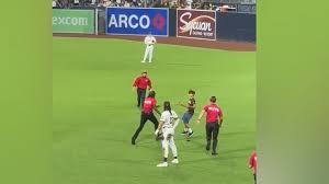 In a startling incident during the recent Padres vs. Giants game at Petco Park, a young fan's spontaneous act of running onto the field led to a dramatic scene. As the boy dashed across the grass, the crowd erupted into a mix of cheers and boos, particularly directed towards the security personnel.